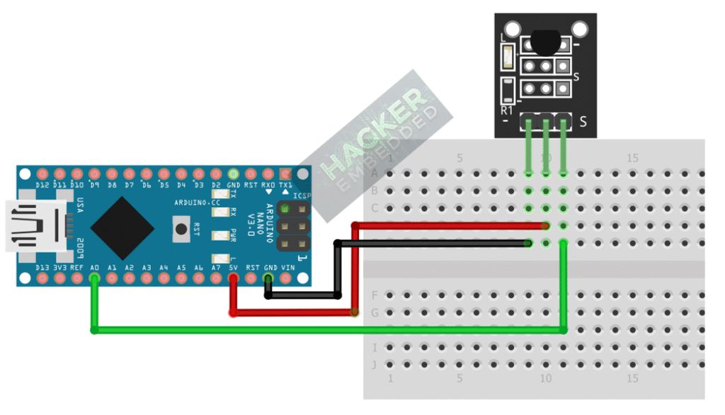 | ADC is fixed at 0 or 1023. | Wiring error or VCC/GND issue | Check that VCC is 5V and GND is secure. Ensure the signal pin is on an Analog pin. |