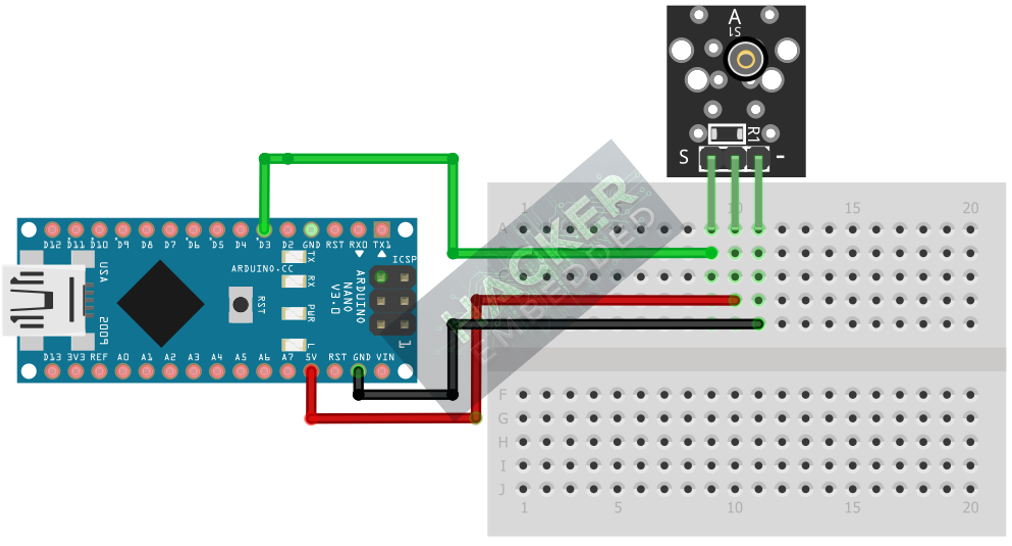 • Connect the S / Signal pin of the KY-002 to Arduino Digital Pin 3.