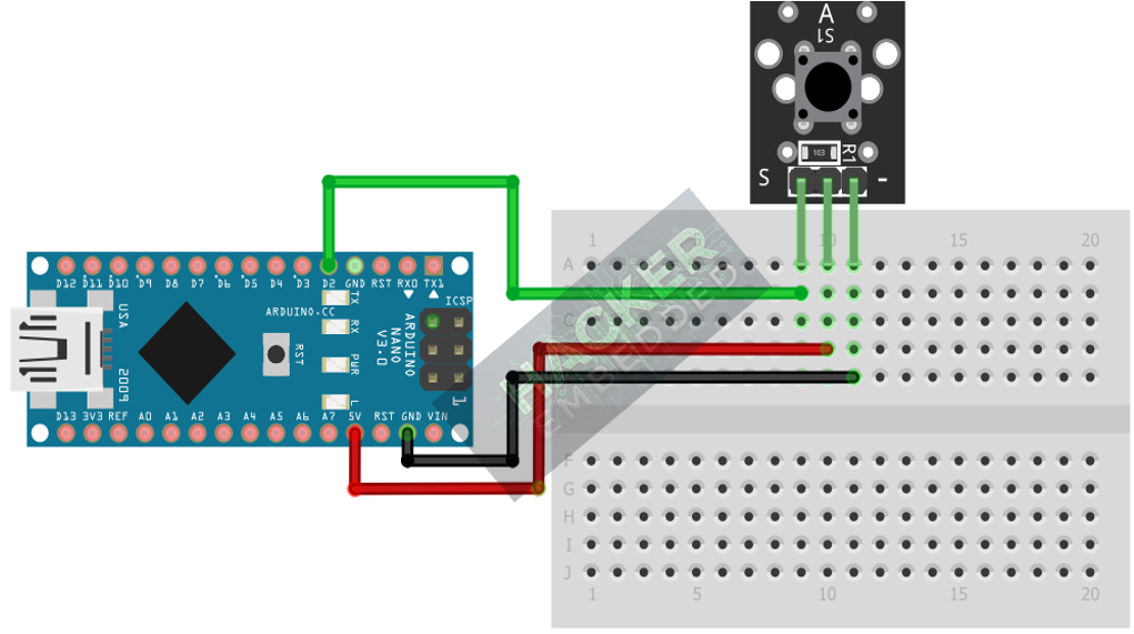- Connect the S / Signal pin of the KY-004 to Arduino Digital Pin 2.