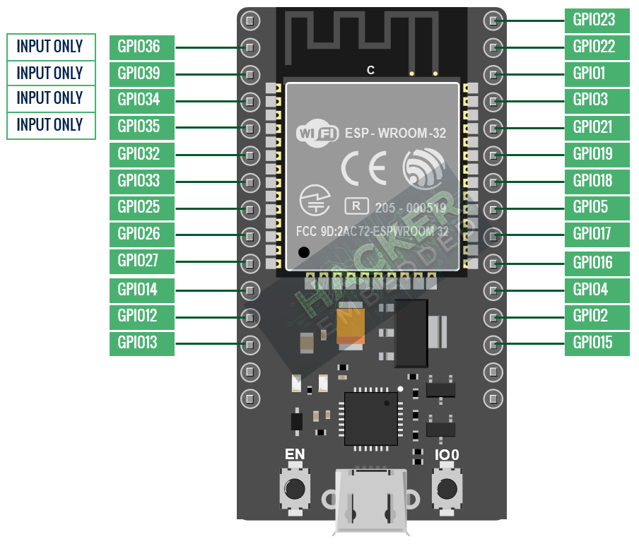 | Input-Only Pins | GPIO 34, GPIO 35, GPIO 36, GPIO 39 | Cannot be set as outputs. They also lack internal pull-up/pull-down resistors. Use them only for reading external sensors. |