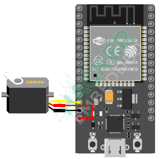 Servo servoMotor;This defines the GPIO 13 as the control pin and creates a
