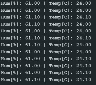 The Humidity and Temperature is shown on the Serial Monitor: