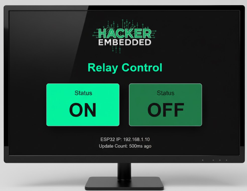server.send(303)): After successfully changing the relay state, the ESP32 sends an HTTP 303 (See Other) response with aLocationheader pointing back to the root page (/). This forces the browser to immediately refresh, loading the updated status dashboard without requiring the user to navigate manually.