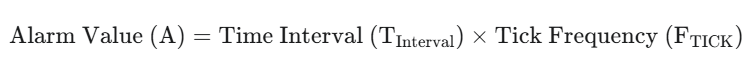 The Alarm Value (A) is the total number of ticks the timer must count up to before triggering the interrupt.