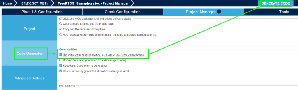 Generate the code and Open it in STM32CubeIDE.