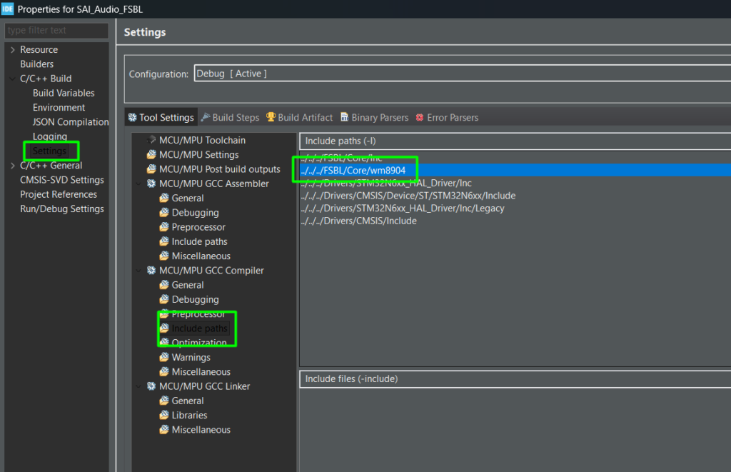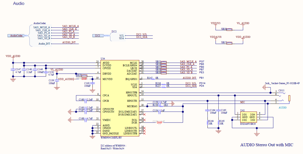 While the WM8904 codec supports stereo audio, this article intentionally uses mono 16‑bit PCM at 16 kHz to keep things simple and reduce memory/DMA load.