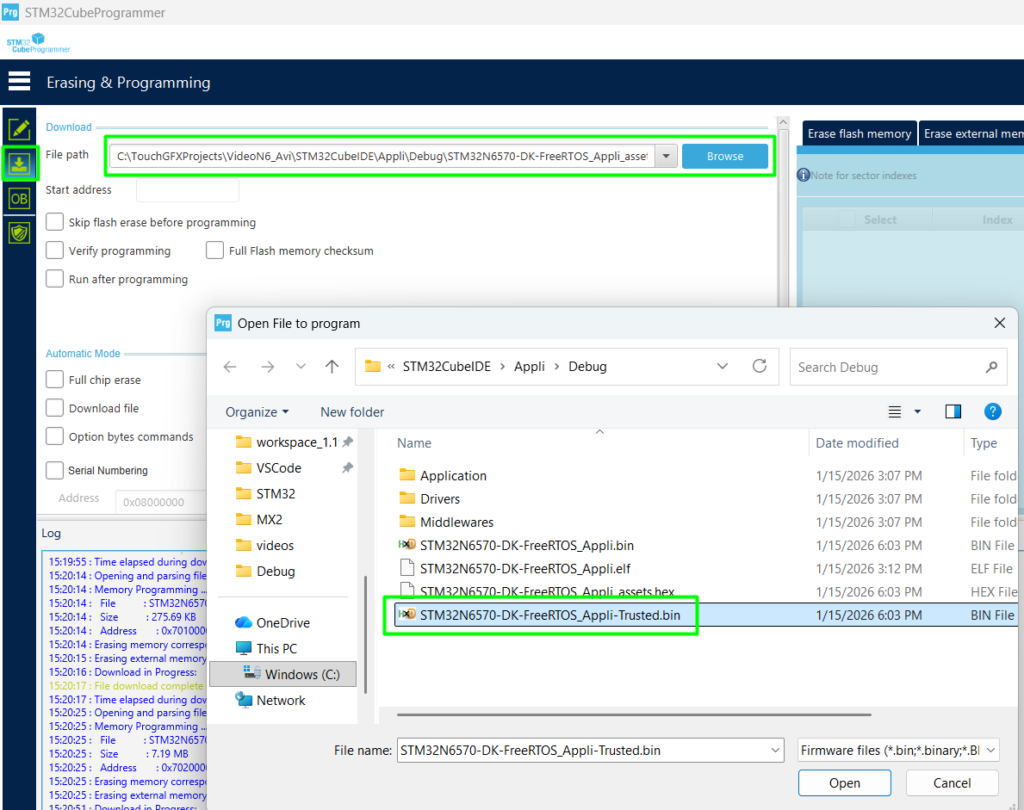 Under C:\TouchGFXProjects\{Projec Name}\STM32CubeIDE\Appli\Debug the: STM32N6570-DK-FreeRTOS_Appli_assets.hex and the STM32N6570-DK-FreeRTOS_Appli-Trusted.bin
