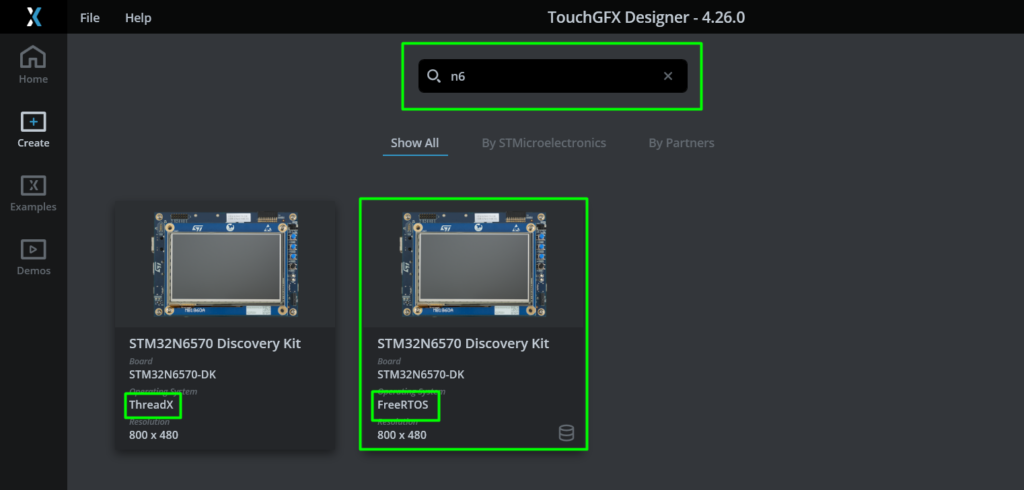 Filter by STM32N6 and select the preferred RTOS, both work just fine and in this case FreeRTOS will be the one used: