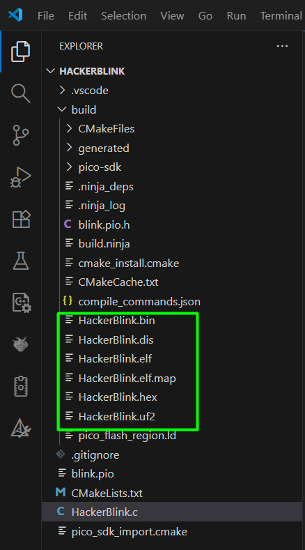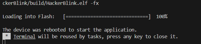 - Drag and Drop: Locate the generated .uf2 file in your project’s build directory (e.g., build/HackerBlink.uf2).