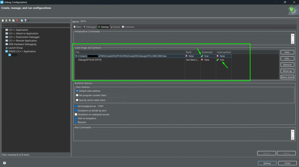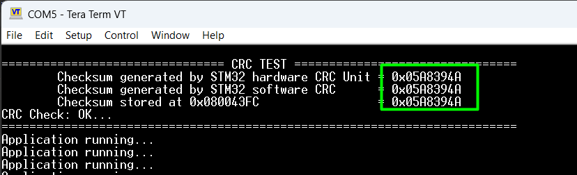 6. Verify CRC with the terminal or by using the [Memory] View during debug session.