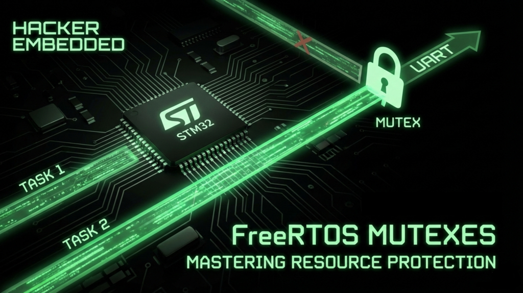 In a multitasking environment like FreeRTOS, resource contention is an inevitable challenge. When two tasks attempt to access the same peripheral simultaneously, be it a UART port, an I2C bus, or a shared memory buffer, the result is often data corruption or system instability. This article explores Mutexes (Mutual Exclusion) as the primary mechanism for resource protection on STM32. We will cover the fundamental differences between Mutexes and Binary Semaphores, the critical concept of Priority Inheritance, and provide a hands-on implementation to ensure your concurrent tasks play nice with shared hardware.