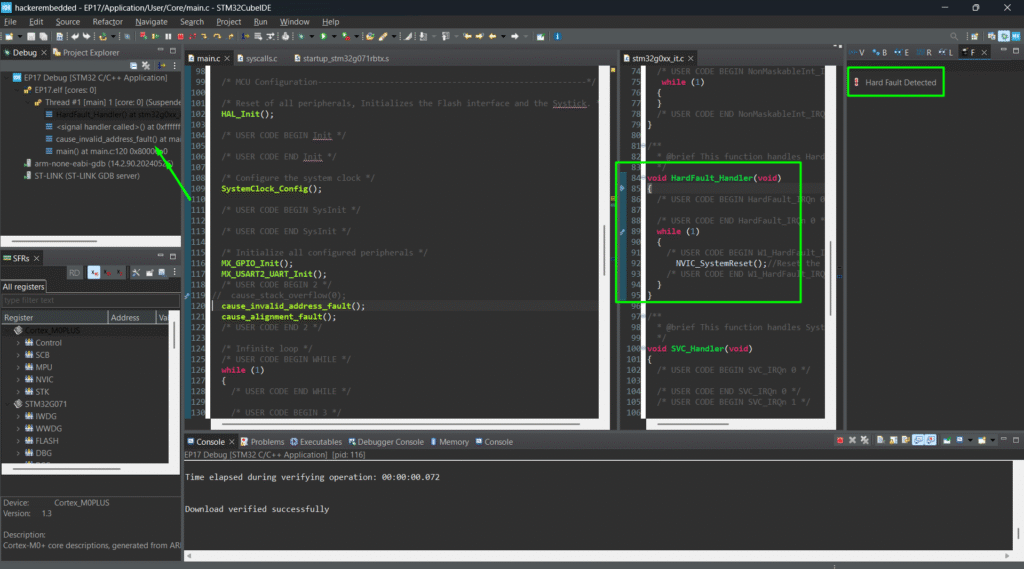 2. Observe MCU enters HardFault_Handle