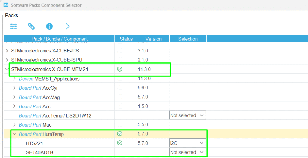 • Click Software Packs → Select Components to initialize the Humidity Temperature.