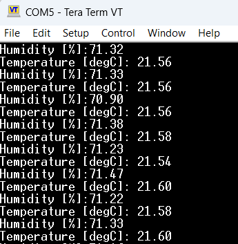 4. Test I²C Communication → Sensor readings appear in real-time. Open Tera Term or similar Serial Monitor.