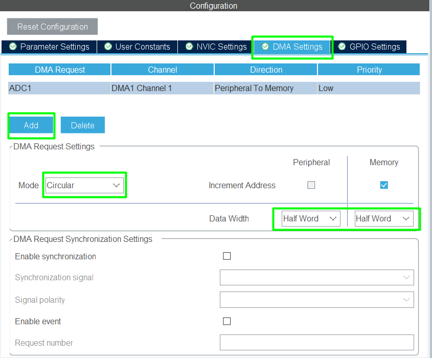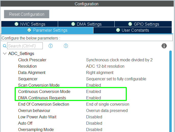 | DMA not updating ADC value | DMA not started or linked | Call HAL_ADC_Start_DMA() |