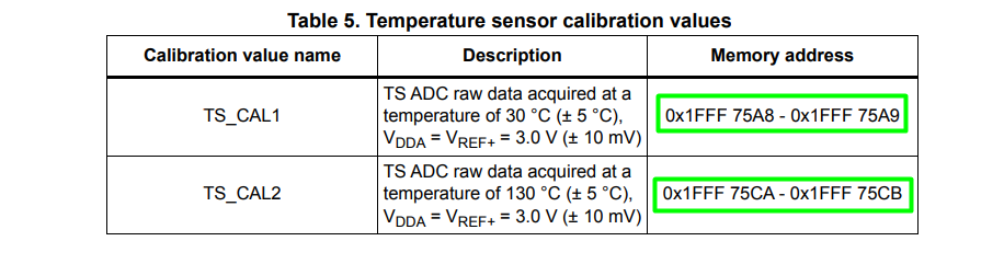 #define TEMP30_CAL_ADDR ((uint16_t*) ((uint32_t) 0x1FFF75A8))