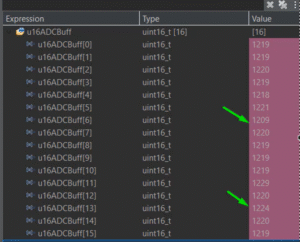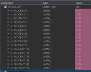 HAL_ADC_Start_DMA(&hadc1, (uint32_t *) u16ADCBuff, 16);