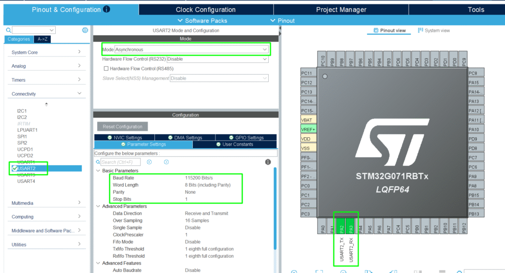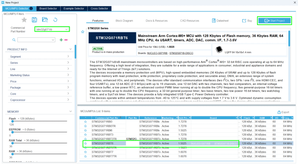 Several boards can be used; this article will focus on a simple NUCLEO-G071RB board.