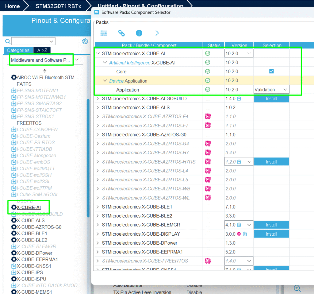 2. Activate X-CUBE-AI: Within STM32CubeMX, select the X-CUBE-AI software package.